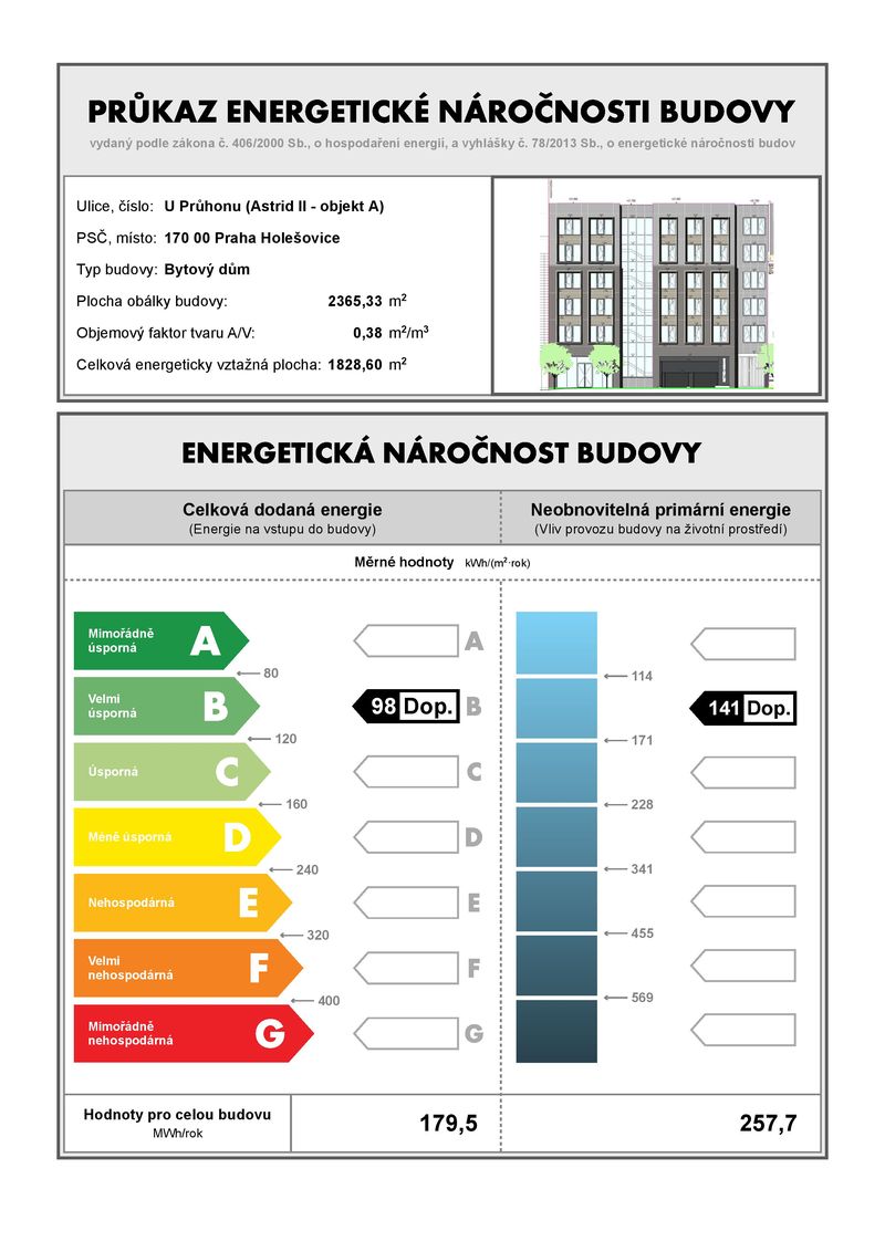 Projekt realizujeme s ekologickou certifikací BREEAM, která obsahuje standard postupů v oblasti navrhování a realizace budov s důrazem na trvalou udržitelnost a je praktickým měřítkem k popisu vlivu budovy na životní prostředí a úspory energií.